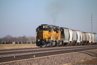 After that, I proceeded to Beaumont, and instantly drove in circles around town to no avail of 911. FINALLY, at about 7pm, I saw 911's headlights in the yard while it got a crew change. The first place I caught it was Langham road. I got mediocre pictures of it there, but I got video.